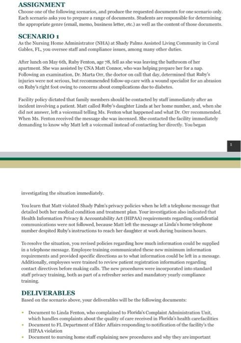 Assignment Choose One Of The Following Scenarios And Chegg Com