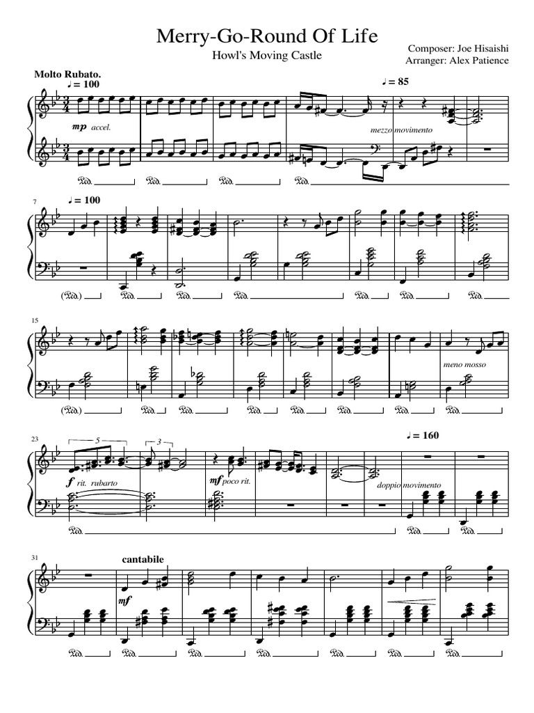 Sf dg sf dg sf dgad sf ad sf ad sfps ad ps ad ps adOa Ip uO 3 7 0 W r u O uu p s 2s f qtu f 3d Wyisa. Piano score for the song from the Studio Ghibli film Howls Moving Castle. Merry Go Round of Life Howls Moving Castle sax piano.